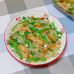 18.A dish of shredded pork, beans and fried rice noodles is ready~