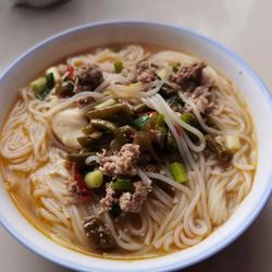8. Soup is good.Ladle soup into rice noodles.Delicious Shaoyang rice noodles are ready.