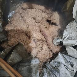 9. Use the extra lotus leaves to wrap the meat if the lotus leaves are large, or use the extra lotus leaves for small ones.You can cover it with a lotus leaf.