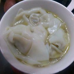 5. Stew the wontons in a pot until cooked, then put them into a bowl of chicken soup with a strainer.The yellow chicken soup has white cat ears floating in it.It looks delicious and smells good!