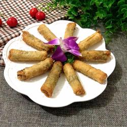 8.Put oil in the pot until it is 60% hot.Turn to low heat and add spring rolls.Fried.