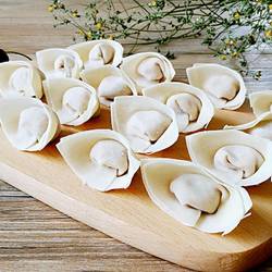 6.Take a wonton wrapper and put an appropriate amount of meat filling in the middle
