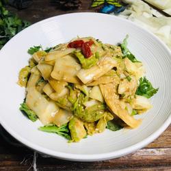 8. Spread coriander on the bottom of the plate, and place the mixed cabbage on top of the coriander
