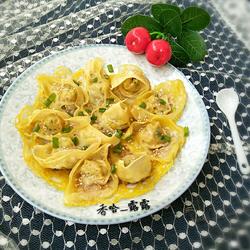 4. Place the wontons on a flat bottom Fry the bottom of the pot over low heat
