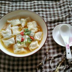 12. Boil water over high heat and cook the wontons until they float.Spoon into the reserve bowl.Drizzle sesame oil, sprinkle with coriander, white sesame seeds, and wolfberry for decoration.Finished and edible.