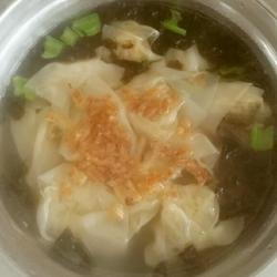 5.After the wontons are taken out of the pot and put into a bowl, add some fried onions, and the fragrant wonton soup is ready to eat