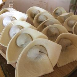 4.Put the stuffing into the middle of the dough and apply a little water on it