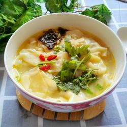 17. Sit in a pot and add water.Bring the water to a boil and cook the wontons.It will be ripe as soon as it starts to float.Turn off the heat.
