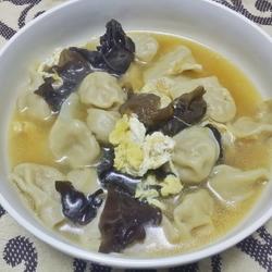 18. Watch the wontons become bigger and float up, then pour in the egg liquid, cook for another minute and remove from the pan