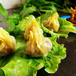 2. Place the wontons on the steamer, put them into a pot of boiling water, cover and steam over high heat for 10 minutes