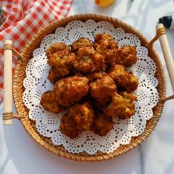 13.Fry for about four or five minutes, the balls will all float and the color will be even.