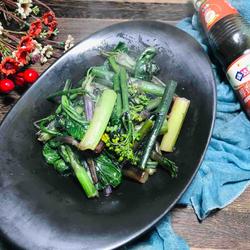 5.Add the vegetable moss and stir-fry over high heat until cooked through