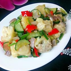 9.Add wontons and stir-fry, add chopped green onion and stir-fry