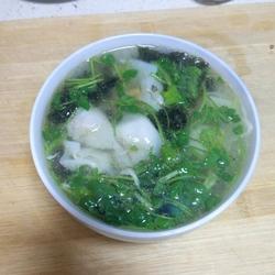 6.The process of cooking wontons Put away the soup, take an empty bowl and add coriander, dried shrimps, seaweed, pickles, salt, white pepper, and a drop of sesame oil for later use