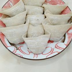 6.Take a piece of dumpling skin and put an appropriate amount on it Meat filling