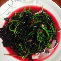 6.Stir-fry for about a minute until the amaranth becomes soft and watery