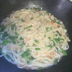 4.Put in the noodles and separate them with chopsticks.Be sure not to form lumps!