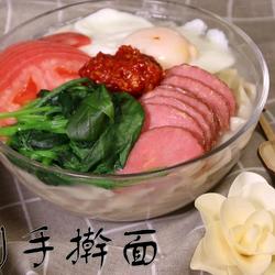 1.Put an appropriate amount of salt water (stronger), an egg (flavorful), and a small amount of water into the noodles