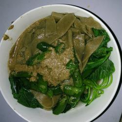7.Use a kitchen knife to cut the noodles into strips, and then cut the pepper into sections p>
