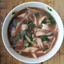 7.Turn on high heat and add broken noodles into the lentil soup cooked earlier (if If the amount of water is not enough, you can add boiling water).When the noodles are cooked, add the chopped green onions fried earlier.