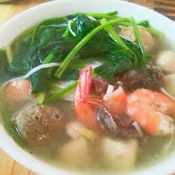 4. Gradually pour the meatballs and shrimp into the pot (I use boiling water to remove the shrimp and meatballs in advance After a while)