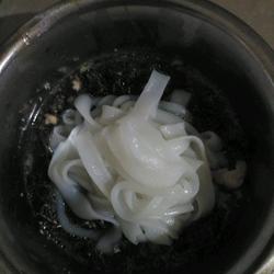 2.After cooking, there is a little of water, boil and add noodles without adding oil or salt.