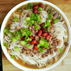 2. Remove the noodles Just put the fried diced pork and fried peanuts.If you like chopped green onion, add chopped green onion