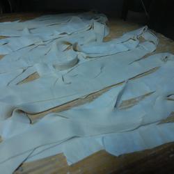10. Slowly stack the dough pieces from the rolling pin onto the chopping board.