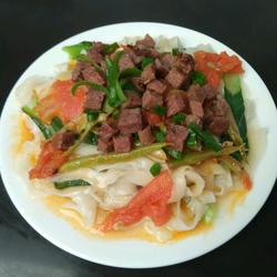 5. Pour the fried vegetable juice and vegetables on the noodles, and sprinkle with chopped beef and chopped green onion..It’s just a plate of braised beef noodles that is oily but not greasy.