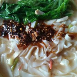 It's very simple.It's raining lightly and cold wind is blowing at home today.I have a bowl of hot noodles and I feel warm immediately!