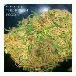 8.Put the steamed noodles and stir-fried raw pork into the pot