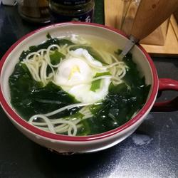 1. Prepare the required ingredients...miso sauce , dried wakame, eggs, noodles (the noodles can be wet or dry)