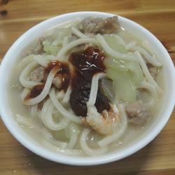 1.Prepare ingredients: noodles, lean meat, mushrooms, dried shrimps, cucumber p>