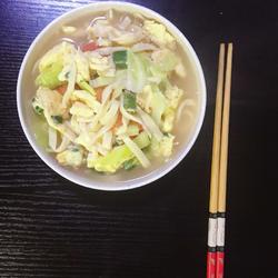 The soybean noodles will be a little sticky, so you can adjust the proportion yourself.Put more flour and let it rise for a while, which will make the noodles taste better.Eggs should be tender and tender.