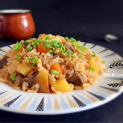 The beef should be cooked in advance.If it is cooked with rice, it will not rot easily.