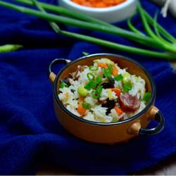 If you use less water to cook the rice, you don’t need to add salt, because the saltiness in the sausage is enough to give the rice a flavor.