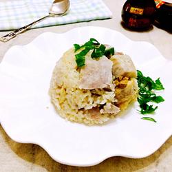1. Prepare the ingredients, wash and cut the chicken into pieces.Peel and cut the taro into cubes, wash the rice.(I missed the cooking wine and salt)