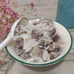 11. Then pour the fried taro and rice into the pot , put a clay spoon into the pot, press the cooking button and it’s ready
