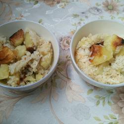 1.Peel the potatoes and cut into small pieces, and set aside the remaining rice.As shown in the picture: