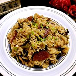9. Add a little salt (there is salt in the bacon, a small amount of salt is to enhance the flavor of the rice), five-spice powder, chicken essence, light soy sauce, and dark soy sauce and stir-fry evenly.