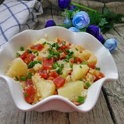 1.Peel the potatoes, wash them and cut them into hob cubes.Rinse the cut potatoes