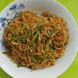 5.Pour the steamed noodles into the basin, pour step 4 into the noodles and mix well.