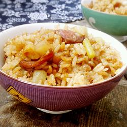 7.Put the fried potato sausage into the rice cooker and select Fine Cooking Function!