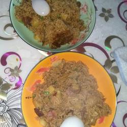 9. Stir evenly and serve.Try to keep the taste as strong as possible.If it is too light, it will feel too greasy.Don't add too much water to the rice, as it will affect the taste if it sticks.