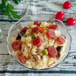 Soak glutinous rice one night in advance for a stickier texture It's thick and delicious.You don't need to add too much water when cooking.You don't need to add salt if the sausage has salt.