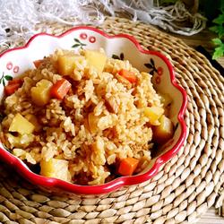 7.Put the fried potatoes into the rice cooker and press the rice button