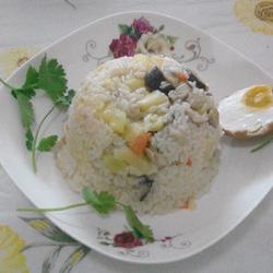 The stewed rice contains a little more water than usual.Because potatoes absorb water.