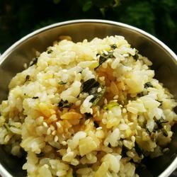 10. When the rice is cooked until the water is almost dry, it will be fried.Put the green vegetables in