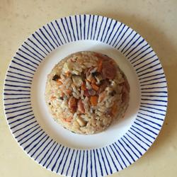 3.Put the fried vegetables and Mix the rice and add appropriate amount of water.