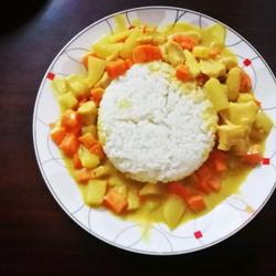 10. Serve the rice and pour it over Curry juice, babies who love curry will definitely like it